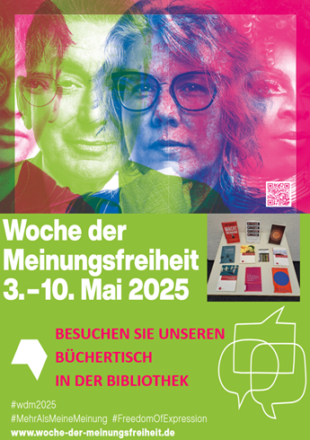 Begleitend zur Woche der Meinungsfreiheit hat die Bibliothek eine Auswahl an neuen Büchern angeschafft. Informieren Sie sich und besuchen Sie unseren Büchertisch in der Bibliothek!